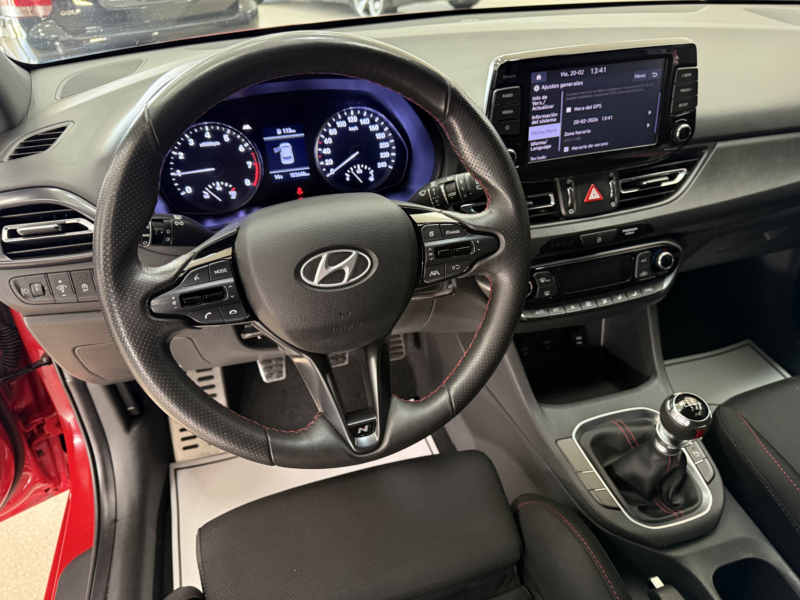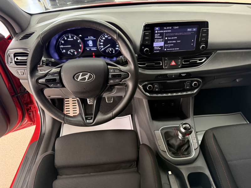 Este Hyundai i30 1.0 TGDI N Line 30 Aniversario destaca por su equilibrio entre deportividad y uso diario. Con acabado N Line, este vehículo combina elementos estéticos deportivos como llantas de aluminio de 17\" bi-tono y alerón trasero, con un confort notable gracias a sus asientos deportivos con ajustes eléctricos para conductor. La motorización turbo de 120CV ofrece un rendimiento ágil en ciudad y carretera, mientras el sistema Start/Stop contribuye a optimizar el consumo. Este modelo incorpora equipamiento de seguridad completo con múltiples airbags y asistentes de conducción. En el interior, destaca por su climatización bizona, volante multifunción de aluminio y cuero, y conectividad para dispositivos móviles. La tapicería Oceanids Black refuerza su carácter deportivo sin renunciar al confort. Con etiqueta medioambiental C, este vehículo mantiene el acceso a la mayoría de zonas urbanas reguladas, ofreciendo versatilidad para desplazamientos urbanos e interurbanos. Matriculado finales Diciembre 2022 Precio oferta: 14.900€ (Financiando) Precio contado: 16.900€